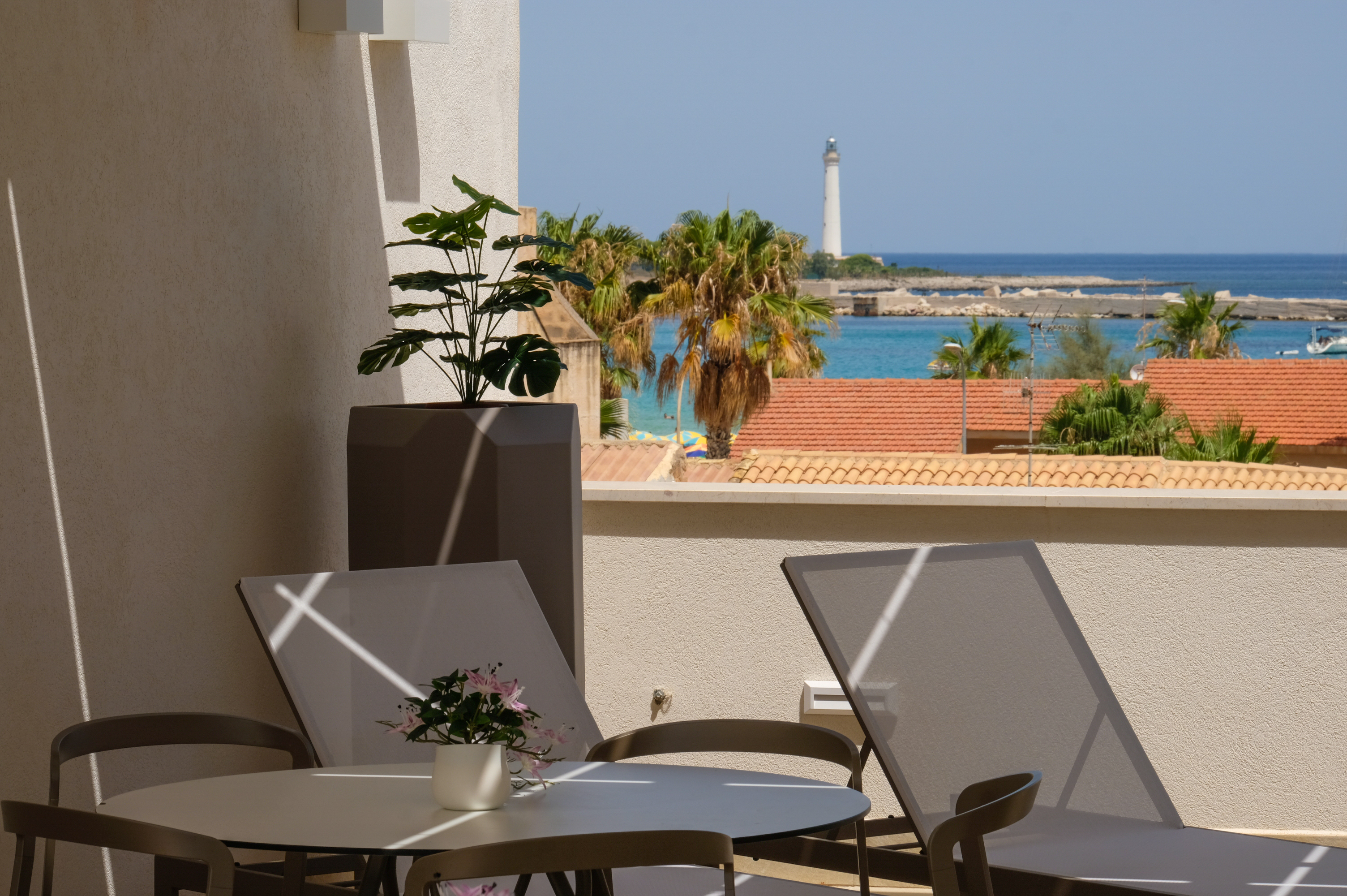 Fiore all’occhiello della struttura è la terrazza panoramica all’ultimo piano, dalla quale si gode di una splendida vista mare. Qui gli ospiti possono rilassarsi in 2 vasche jacuzzi ad uso comune, ideali per momenti di puro benessere al tramonto o dopo una giornata di mare.